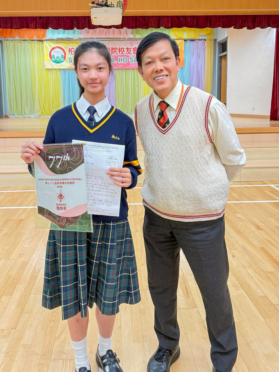 今年2A班在早前舉行的校際朗誦節中獲得粵語中學一、二年級-男子或女子或男女合誦比賽的冠軍。(比賽當日,每位學生都全力以赴,得到評判讚賞「申情專注,節奏跌宕,具豁達之姿」的評語。再次恭喜各位得獎同學!